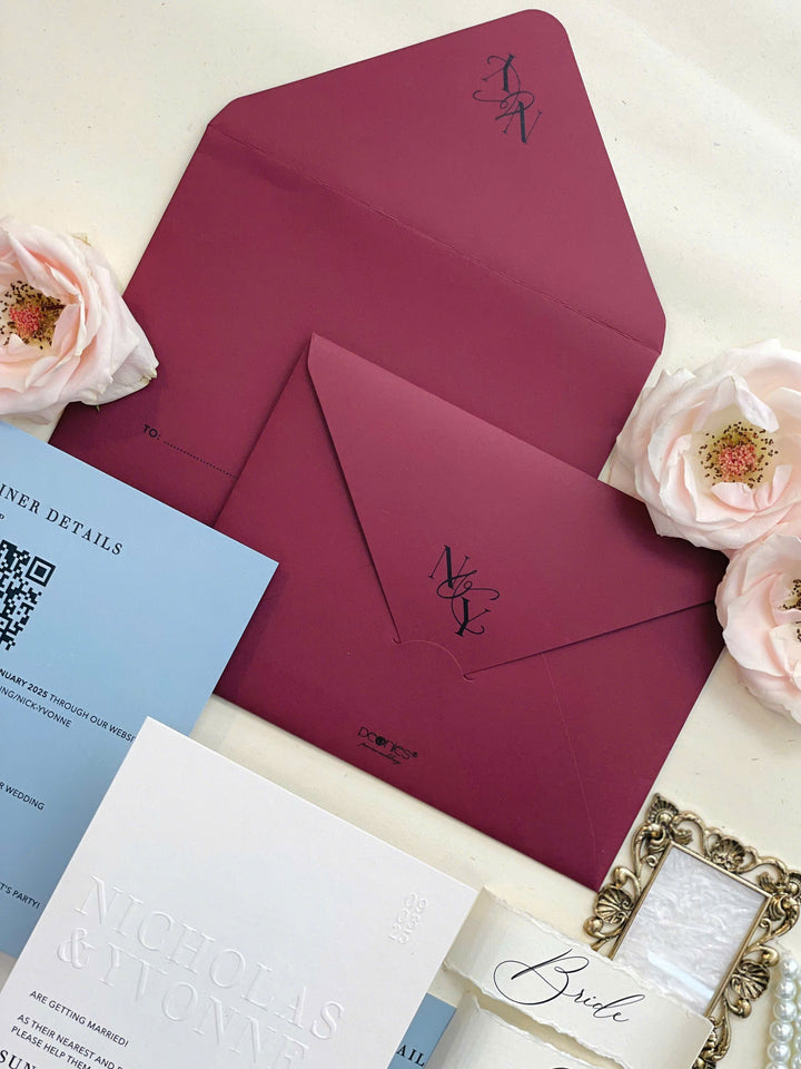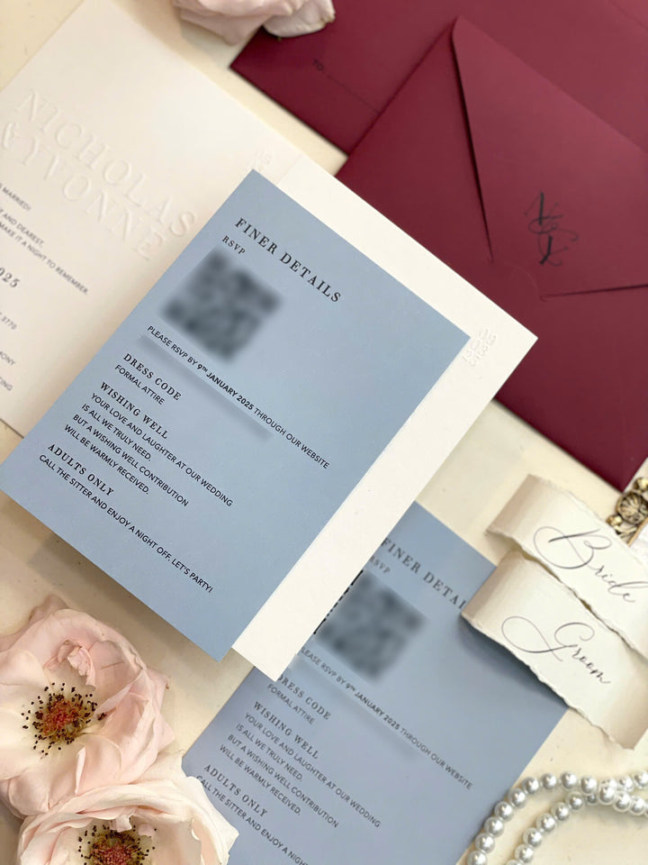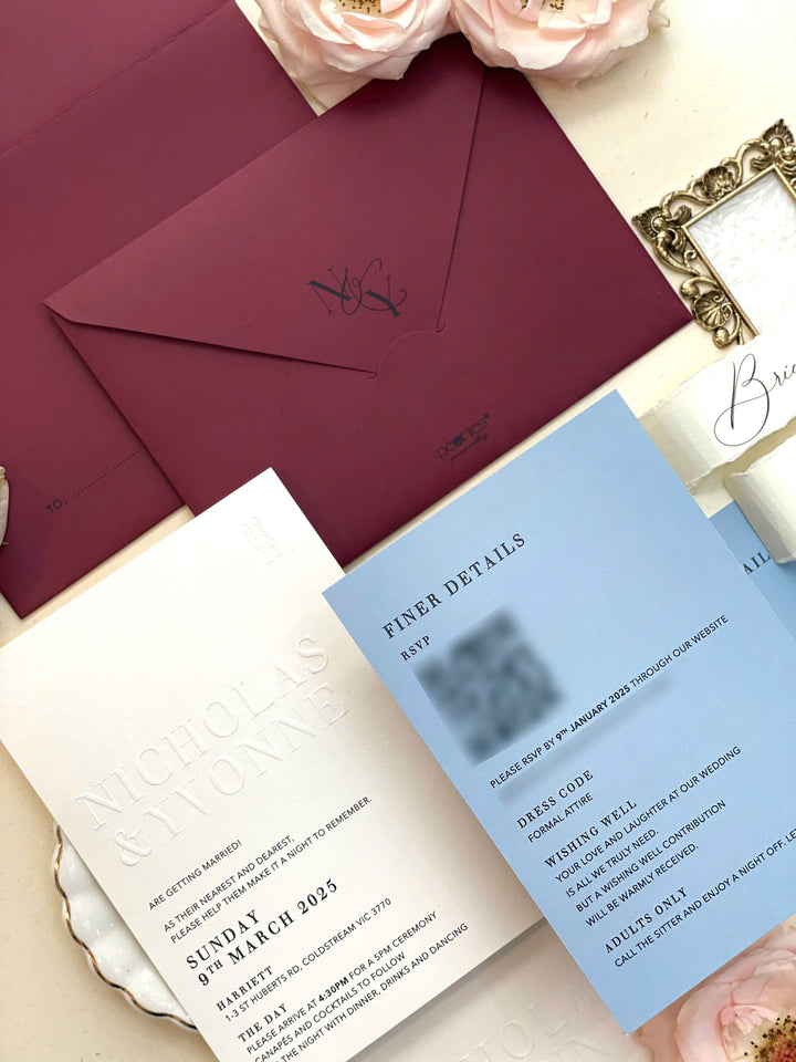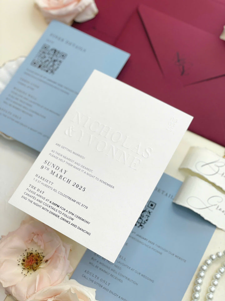 Chic Red & Blue Embossed Wedding Invitation P250908